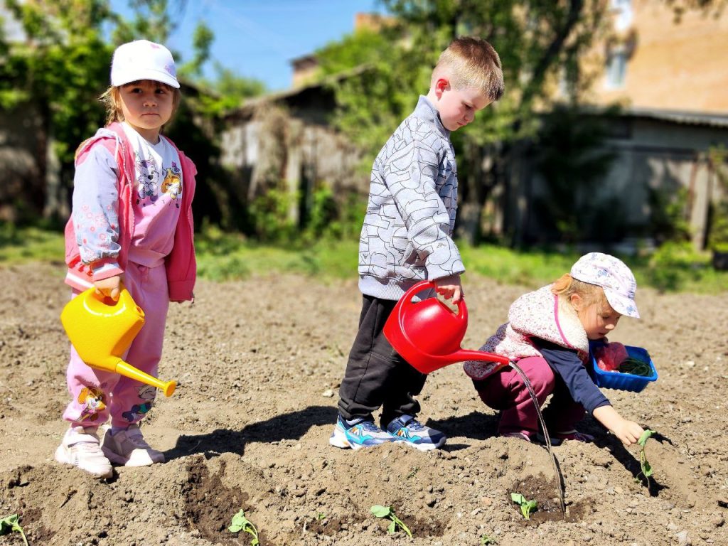 діти та школярі, які навчалися працювати в команді та вирощувати власний урожай.